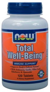 Το NOW® Total Well-Being™ είναι ένα προηγμένο προϊόν διατροφής που δημιουργήθηκε από πιστοποιημένους διαιτολόγους. Είναι ένα ολοκληρωμένο συμπλήρωμα διατροφής, εμπλουτισμένο με τυποποιημένα φυτικά εκχυλίσματα που έχουν εγγυημένη δραστικότητα. Το NOW® Total Well-Being™ είναι έτη φωτός πέρα από άλλες φόρμουλες φυσικής κατάστασης, υπό την έννοια ότι περιλαμβάνει μια συνεργασία θρεπτικών ουσιών που προορίζονται να ενισχύσουν τους τρεις μεγάλους μηχανισμούς του ανοσοποιητικού συστήματος. Οι μηχανισμοί αυτοί είναι υπεύθυνοι για την καταπολέμηση ξένων ουσιών, την υπενθύμιση αυτών από το παρελθόν μας και τον αποκλεισμό της εισόδου σε νέες ξένες ουσίες. Αυτή η φόρμουλα ευρεσιτεχνίας μας αξιοποιεί τη δύναμη της βιταμίνης C, του ψευδάργυρου, της Echinacea, του Olive Leaf, του American Ginseng και άλλων, προκειμένου να καταπολεμήσει τις ελεύθερες ρίζες και παράλληλα να ενισχύσει την αντίδραση του οργανισμού απέναντι στο στρες.